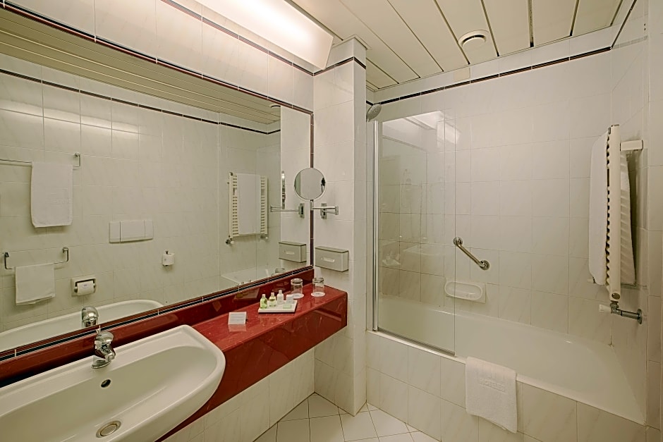 This air-conditioned room features a satellite TV, tea and coffee facilities and a mini-bar. The bathroom comes with bathrobes and slippers, hairdryer and free toiletries.
